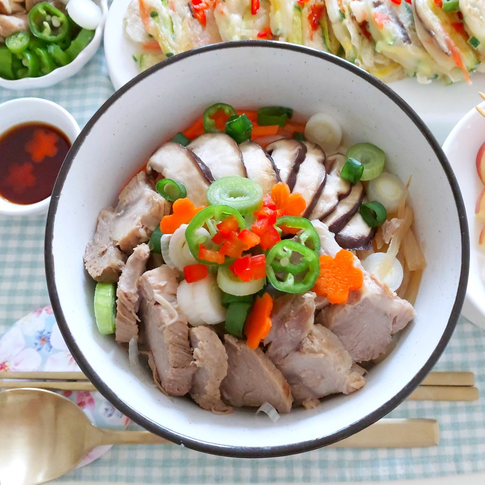 Rich & Savory Boiled Pork & Noodle Soup: Utilizing Leftover Broth from Kimchi Making