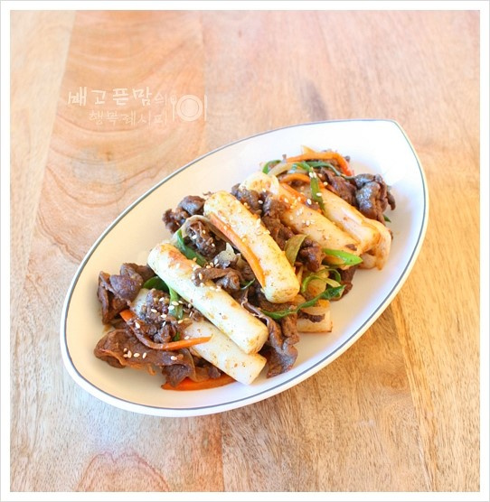 Finally, add the diagonally sliced scallion (1 whole stalk) and stir-fry for another minute. The fresh, mild onion flavor of the scallions adds a final touch of brightness to the dish. Your delicious Royal Stir-fried Rice Cakes with Bulgogi are now ready to be enjoyed! Serve immediately while warm.