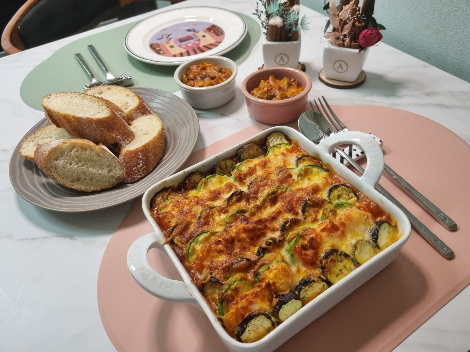 Place the dish in a preheated oven or air fryer at 180°C (350°F) for about 15 minutes, or until the vegetables are tender and the cheese is melted and bubbly. Cooking time may vary slightly depending on your oven or air fryer.