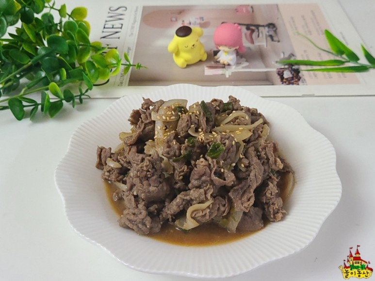 Transfer the delicious, finished Ryu Soo-young Pear & Beef Bulgogi to a serving dish. You’ll have a wonderful home-cooked meal or an impressive dish for guests with this Pear & Beef Bulgogi! Enjoy your meal!