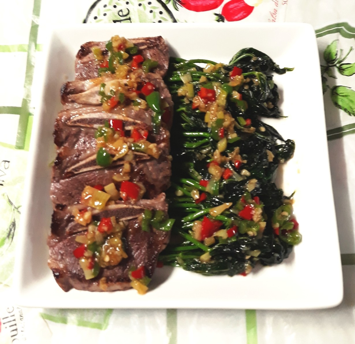 Sautéed LA Galbi with Korean Angelica Tree Shoots (Gae-dureup)