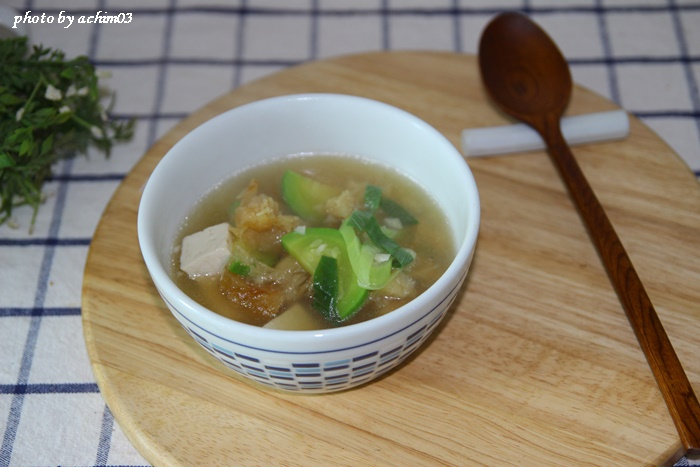 Once the broth is boiling, add the prepared zucchini and tofu. Cook together, stirring gently to prevent the tofu from sticking to the bottom of the pot.