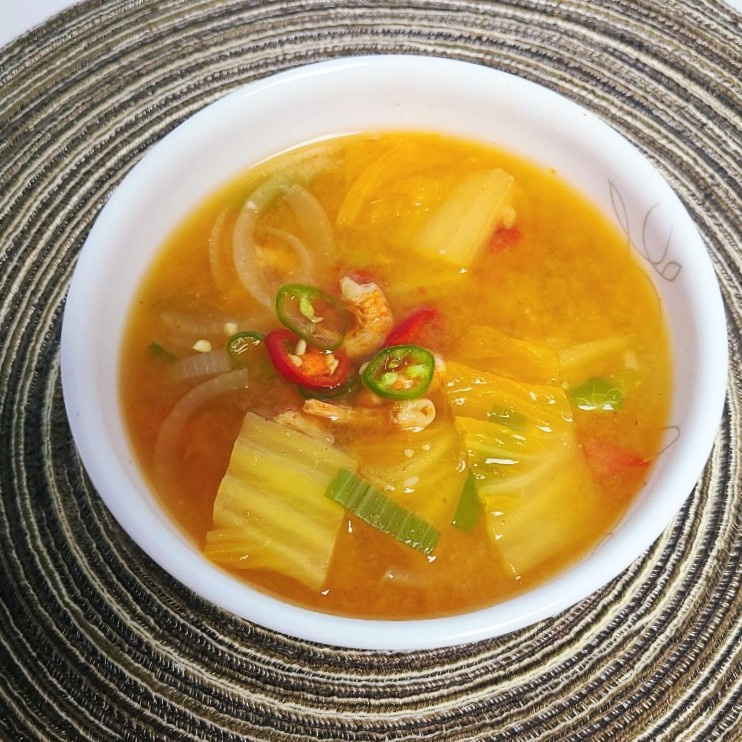 I made a savory and refreshing Napa Cabbage Doenjang soup using leftover wrap cabbage and dried shrimp. It was a perfect soup for dinner, and my husband enjoyed it so much that he asked for a second bowl, saying it paired wonderfully with his soju! Since I usually cook with less salt, please taste and adjust the seasoning to your preference as needed.