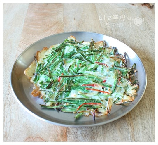 Heat a frying pan over medium heat and add a generous amount of cooking oil. Spoon the batter mixture thinly onto the hot pan, spreading it out into a round pancake shape. Cook until the edges are golden brown and crispy, then carefully flip the pancake. Cook the other side until it’s also golden brown and the pancake is cooked through. Serve your delicious Jinmichae Buchujeon immediately while it’s hot and crispy!