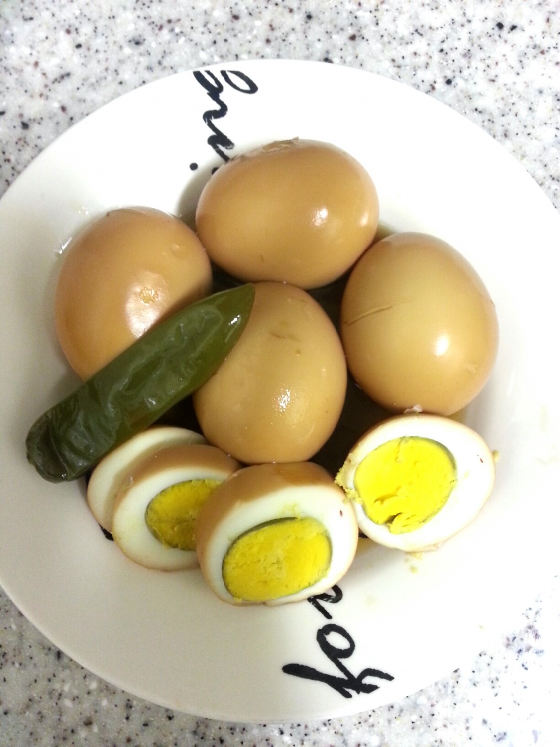 After adding the eggs, adjust the heat to medium-low and simmer gently. For a hint of spiciness and a refreshing taste, add 2 Korean green chili peppers. If this dish is for children, you can adjust the number of chilies or omit them entirely; a slight spiciness can enhance the flavor. Chilling them in the refrigerator overnight will mellow the spiciness and deepen the savory taste.