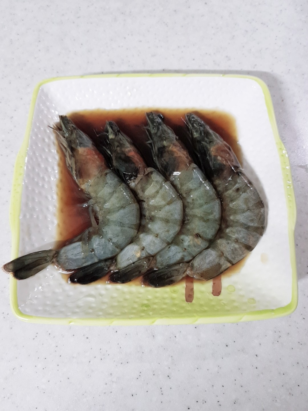 After preparing the shrimp, rinse them lightly once more under running water and drain them thoroughly in a colander. Any remaining water can dilute the marinade flavor.