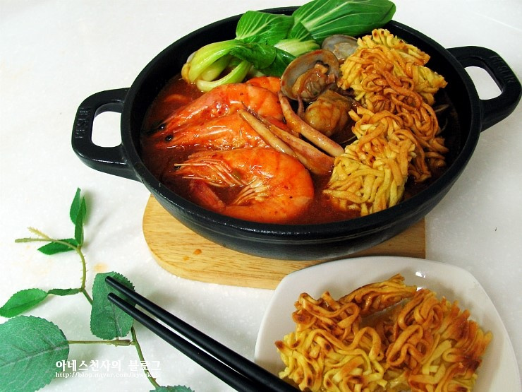 This dish is truly worthy of a special occasion or guest reception! I’m amazed that a simple packet of ramyun can be transformed into such a satisfying and impressive meal. It perfectly satisfies a craving for spicy seafood stew and would also make an excellent accompaniment to drinks for adults. Who knew Nongshim Shrimp Ramyun had such hidden potential? Gather fresh seafood, make this delicious dish, and impress your loved ones! For an even richer experience, you can reduce the broth to create a delicious seafood stir-fry (haemuljjim).
