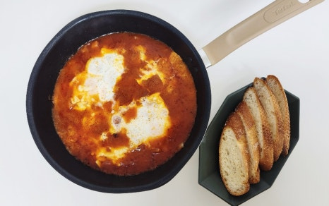 Eggs in Purgatory is one of those dishes you can make incredibly easily using tomato sauce. I also learned it’s called Shakshuka! Today, I decided to make it to use up some leftover baguette bread at home. It’s a wonderfully flavorful dish that pairs perfectly with bread.