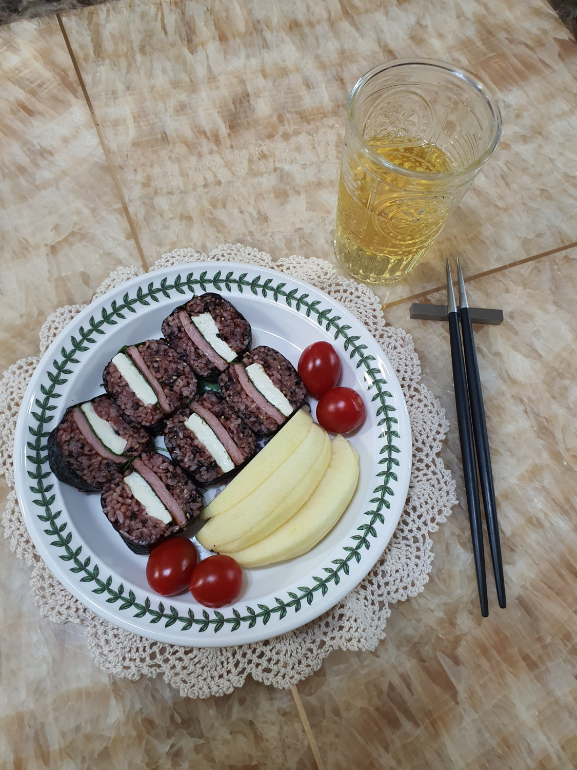 Slice the Spam Musubi into bite-sized pieces, about 2cm thick. Your delicious Spam Musubi is ready to be enjoyed as a satisfying meal or snack!