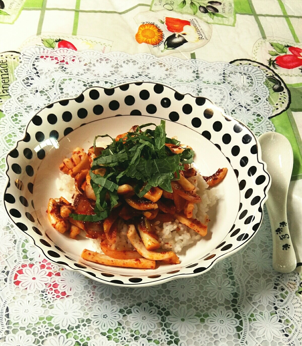 Simple & Spicy Stir-fried Squid Rice Bowl