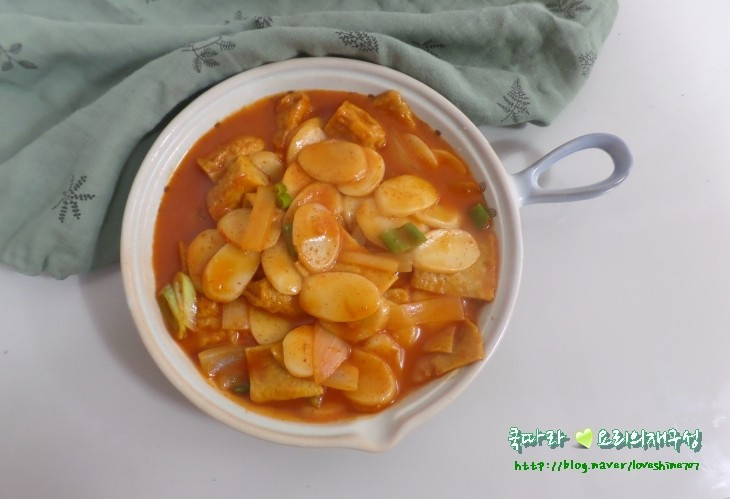 If your tteokguk rice cakes are frozen, soak them in cold water for about 5 minutes to soften them. Using them directly from frozen can result in them not breaking apart well or remaining tough. Adding ingredients like fish cake, onion, and green onion will make your tteokbokki even more delicious. Cut the fish cake into bite-sized pieces, slice the onion thinly, and cut the green onion diagonally.
