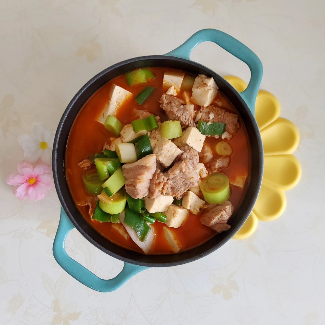 Spicy and Hearty Pork Gochujang Stew (Pork Neck & Tofu)