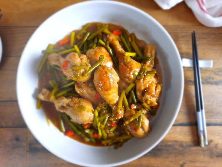 Spicy and Sweet Garlic Scape Stir-fried Chicken Thighs
