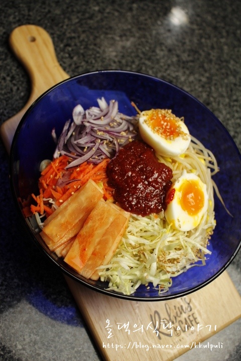 Arrange the julienned cabbage, red onion, and carrot over the Jjolmyeon. Add a generous portion of the blanched bean sprouts for a refreshing crunch. Finally, place the halved hard-boiled eggs on top and sprinkle with sesame seeds. Add your prepared sauce to taste and mix everything together. This spicy and sweet Jjolmyeon will surely awaken your appetite on a hot summer day!