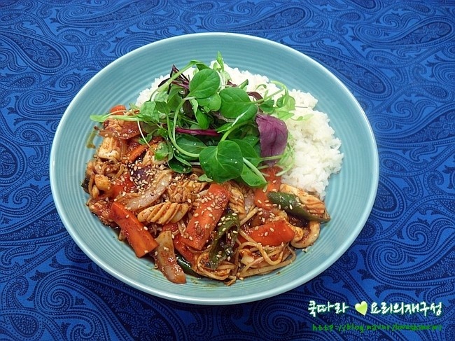 Spicy and Sweet Stir-fried Squid Rice Bowl