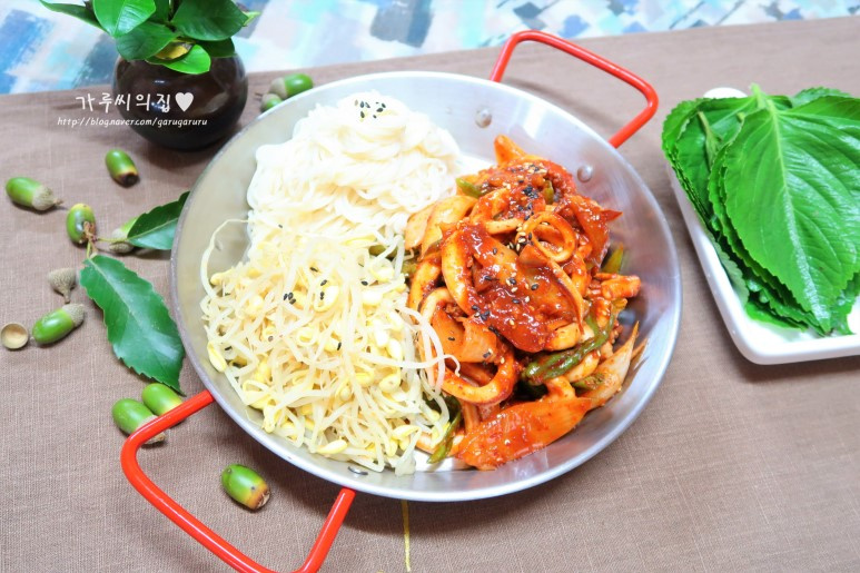A delightful combination of chewy and tender squid with spicy Korean green peppers! This dish becomes even more delicious when served with somen noodles and seasoned bean sprouts. (Referenced from Alto-ran recipe)