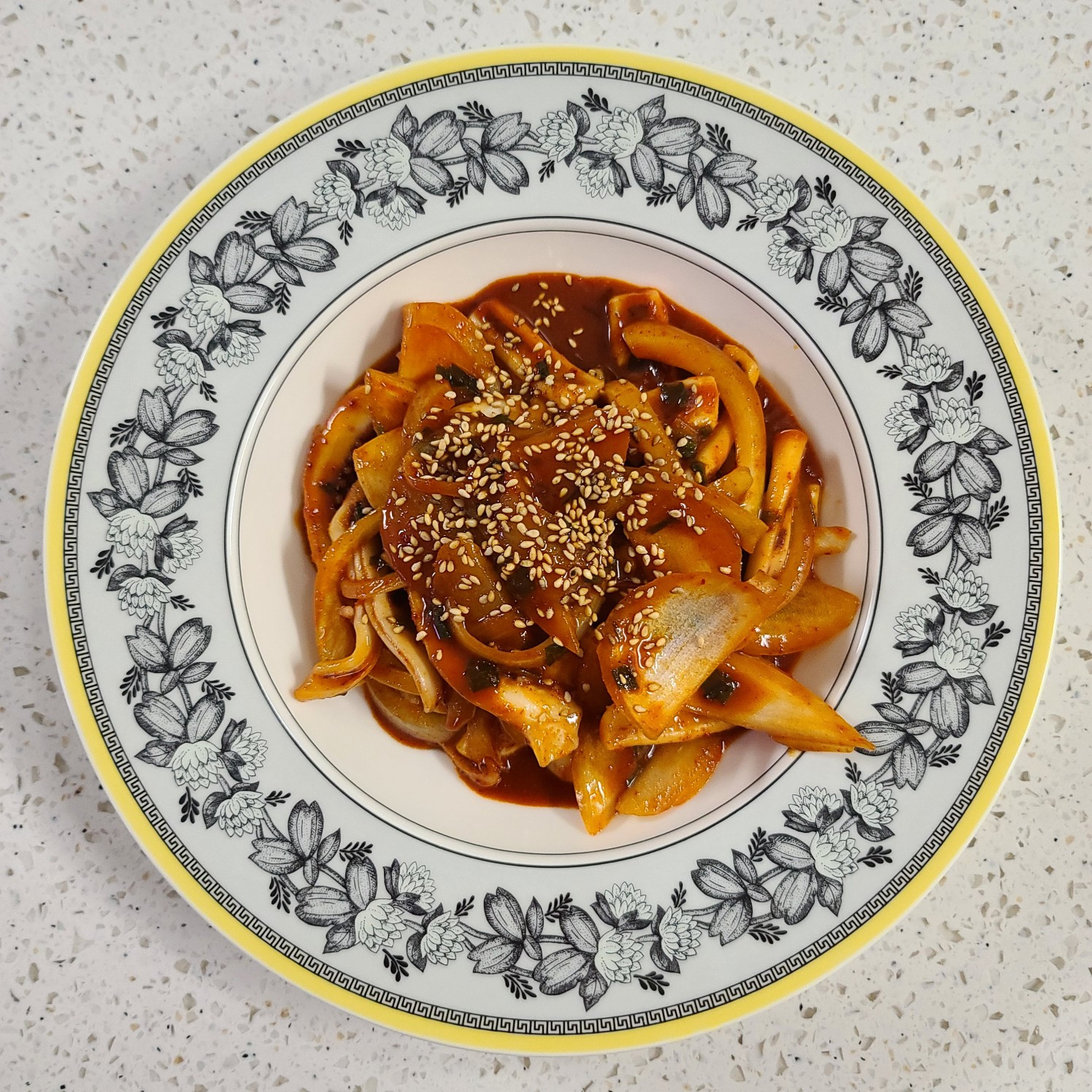 Stir-fry everything together for another moment until the sauce thickens slightly. Just before turning off the heat, drizzle in half a tablespoon of sesame oil for an extra fragrant finish. Your spicy and sweet stir-fried squid is ready! Serve it over hot rice or enjoy it with a cold beer.