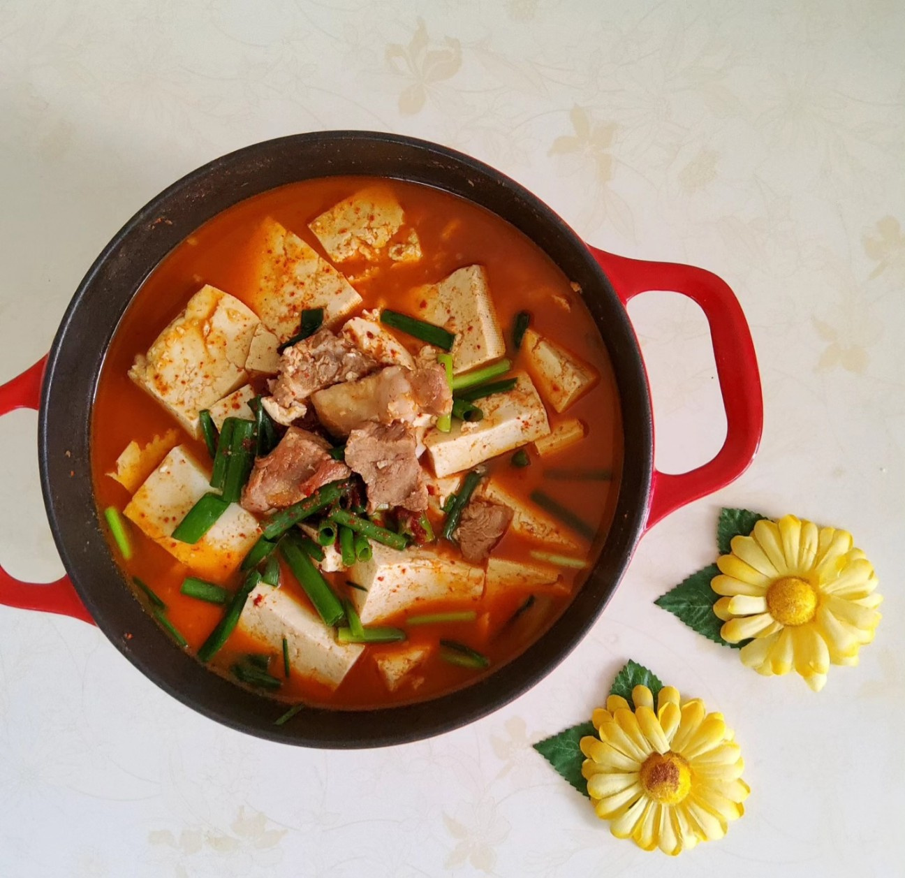 A Revitalizing Spicy Gochujang Tofu Stew with Pork for Hot Summer Days