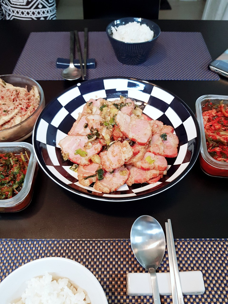 I made a simple main side dish with smoked pork belly bought from a grocery store. It’s also great as a snack for those who enjoy drinks:D