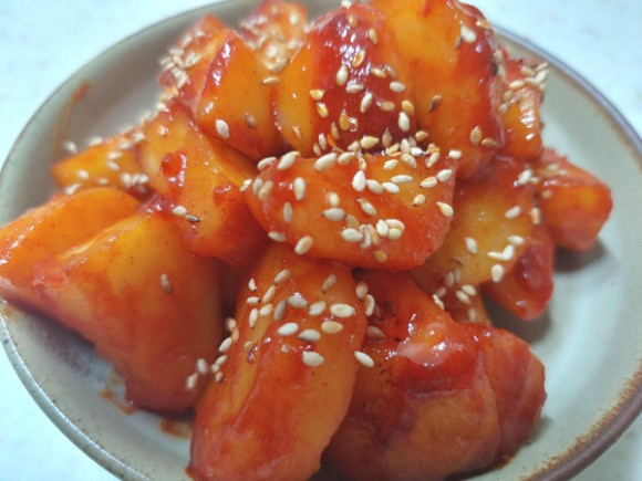 Sprinkle some toasted sesame seeds over the finished braised potatoes for garnish. These thick-cut, chewy braised potatoes are incredibly savory with every bite, making them the perfect accompaniment to rice. Instead of slicing them thinly, try making them thick for a wonderful sweet and spicy treat!