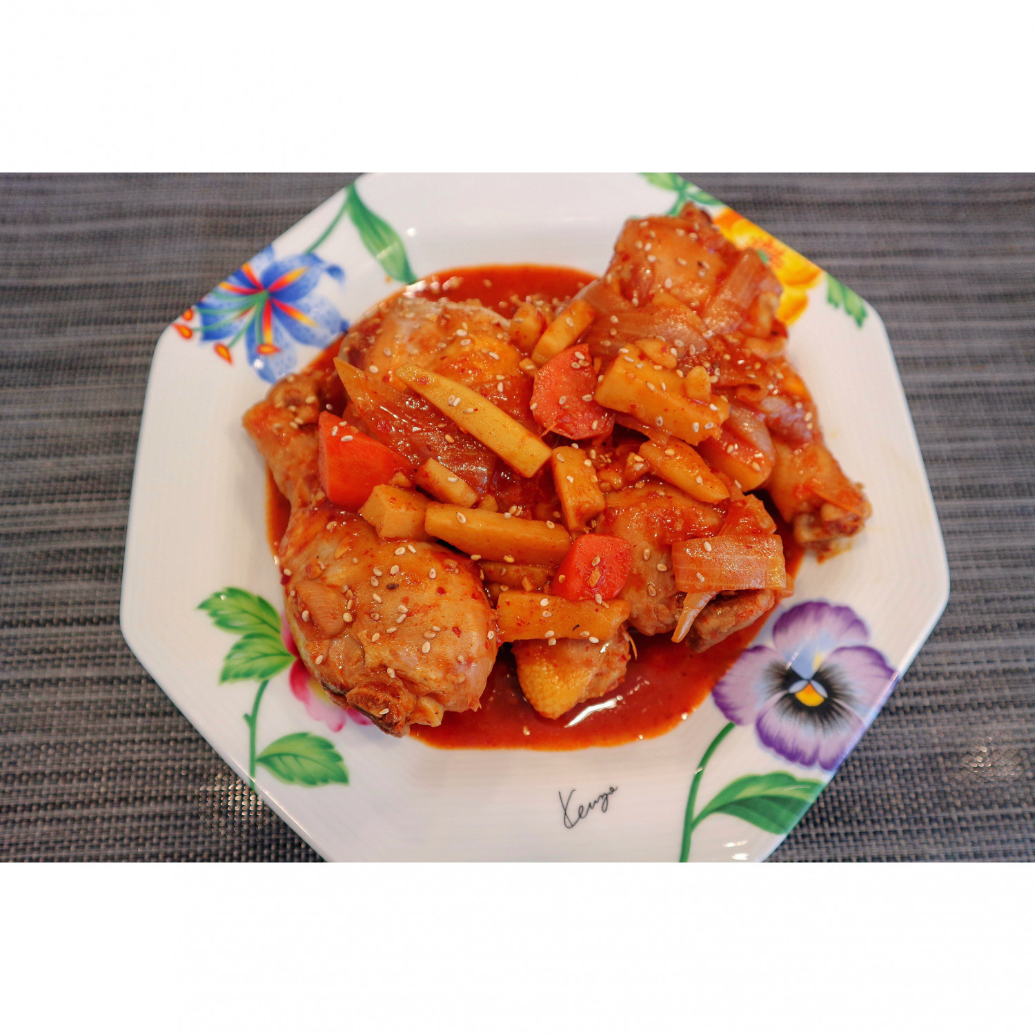 Spicy & Sweet Dakbokkeumtang (Spicy Braised Chicken)