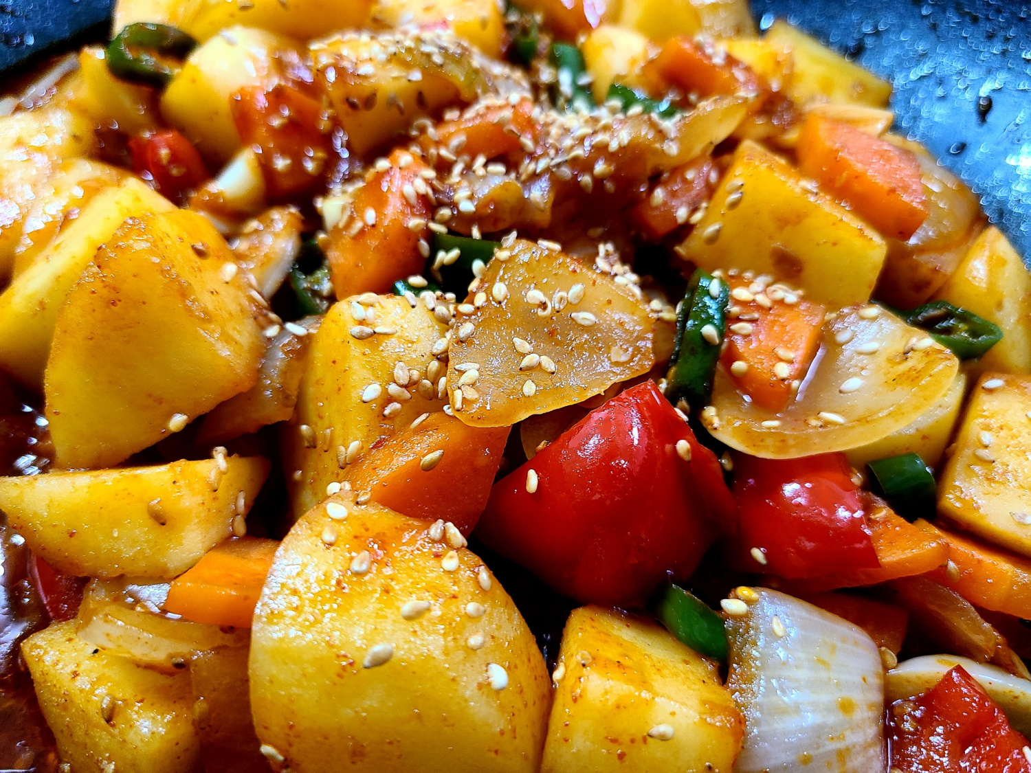 Potatoes are incredibly affordable this year, allowing us to enjoy a variety of potato dishes! Today, I’ve made a stir-fry with a delightful spicy and sweet gochujang sauce. This dish alone is enough to make a hearty meal. You can also watch the video tutorial here: https://youtu.be/8YtXNp2bmcA