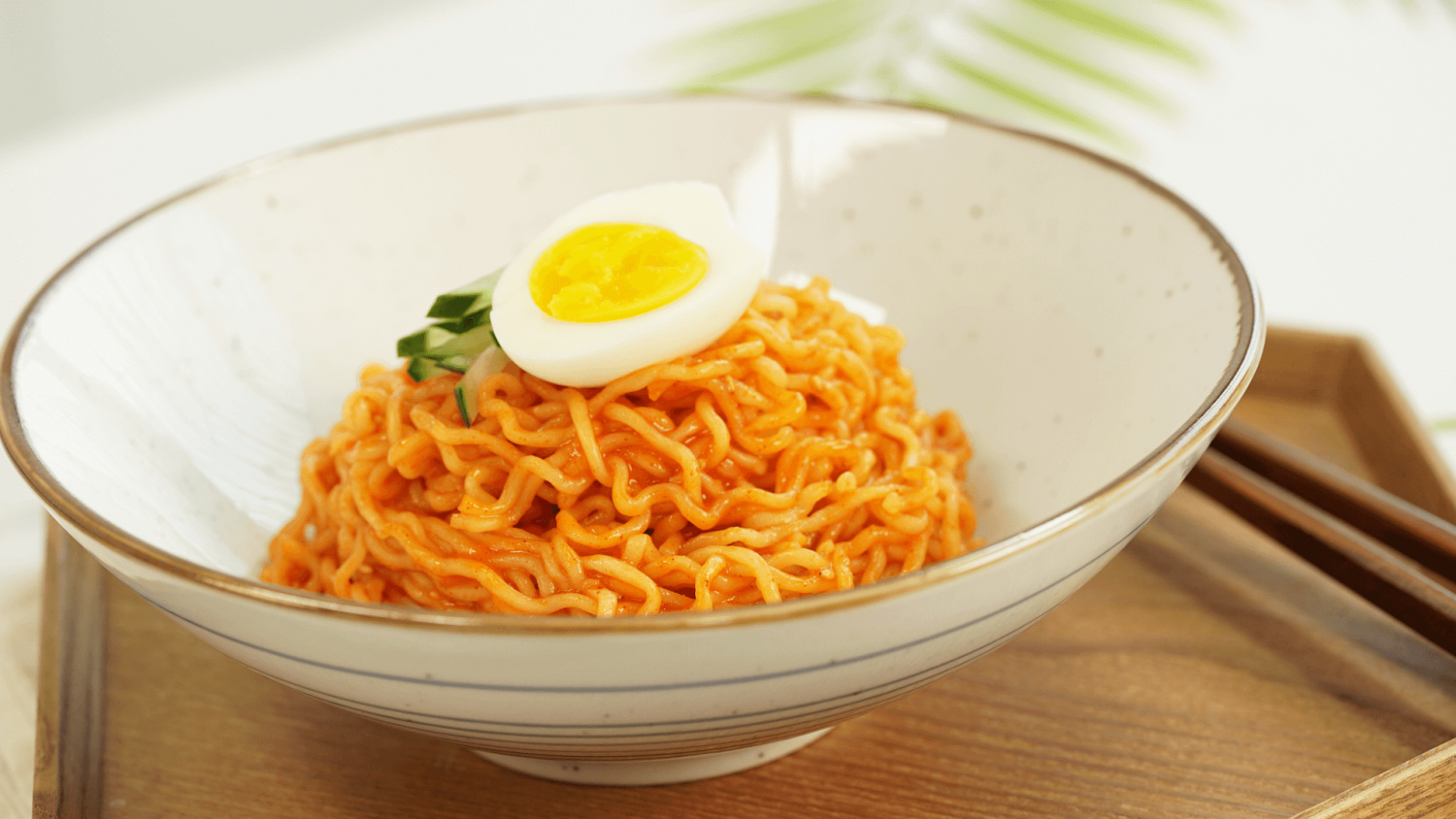 More than just a quick meal! This bibim ramen boasts an explosion of flavor, with chewy noodles coated in a perfectly balanced spicy and sweet sauce that will awaken your appetite. Recreate it like a pro!