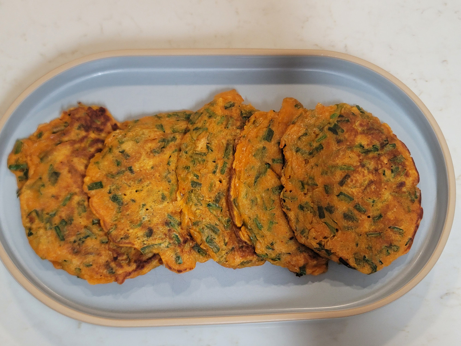 Once the pan is hot, scoop the batter onto the pan using a spoon, forming your desired size and shape (e.g., round pancakes or small patties). Fry for about 2-3 minutes per side, until golden brown and cooked through. Enjoy your delicious Buchu Jangtteok, crispy on the outside and tender on the inside!