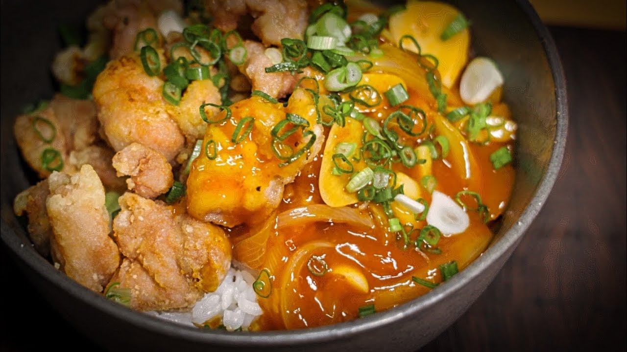 A delicious chicken donburi recipe featuring a spicy and sweet sriracha sauce, made easily by utilizing readily available soba sauce. Enjoy a wonderful meal at home with minimal effort!
