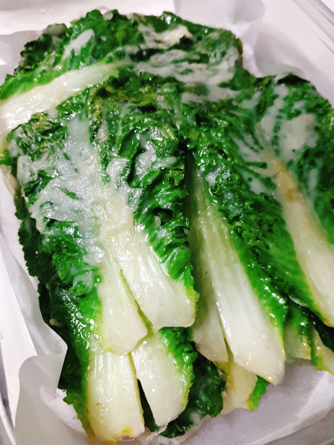 Once the cabbage is clean and dry, carefully cut the thicker stem end into 2 to 4 pieces. Aim for pieces that preserve the leaf’s shape rather than cutting them too small, which can make the pancake fall apart.