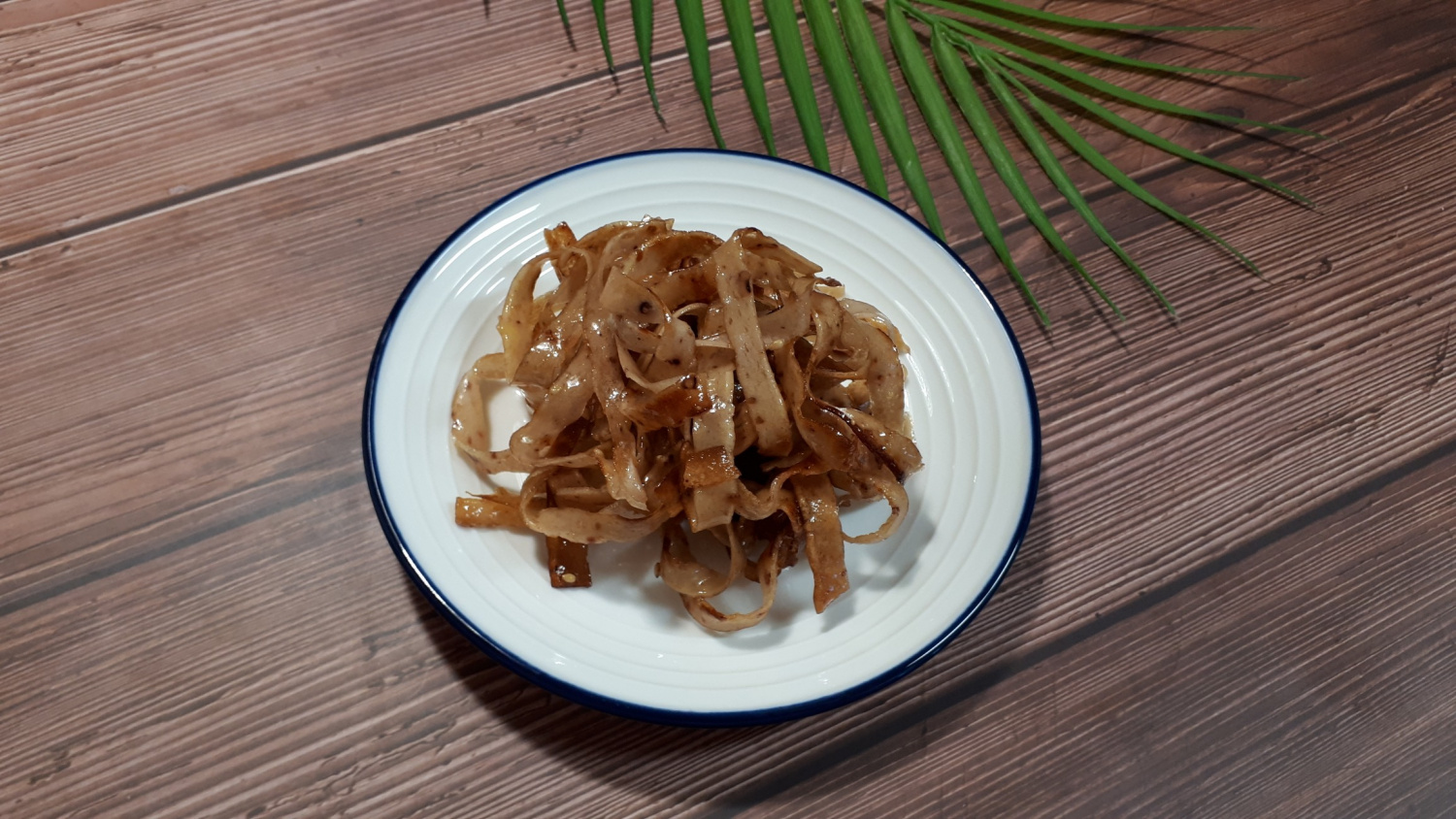 Add a generous amount of cooking oil to the pan. Stir the cut strips occasionally to prevent burning and stir-fry until they become slightly crispy and chewy. This process removes excess moisture, resulting in a wonderfully chewy texture and savory taste.