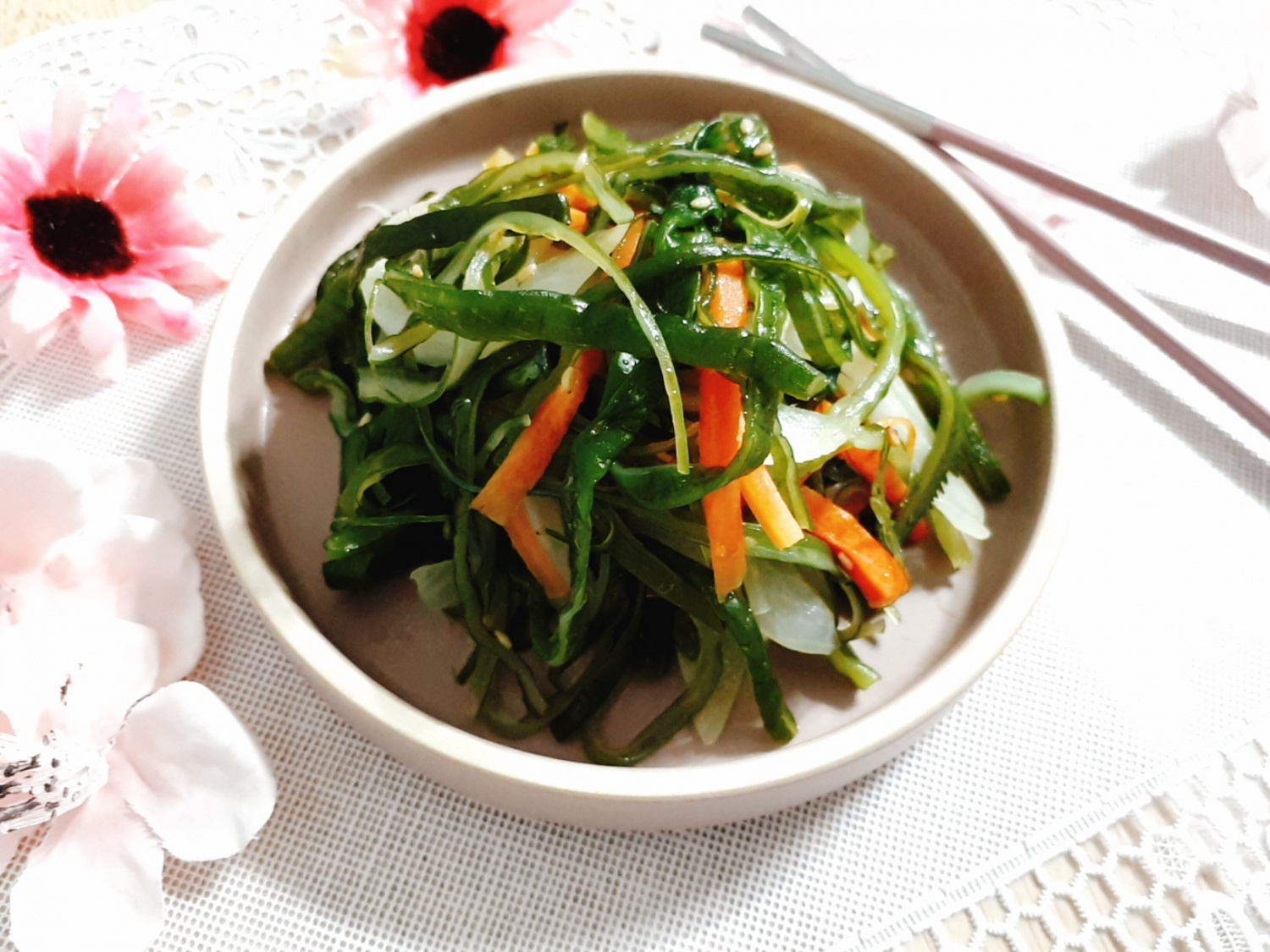 This is a delicious and easy stir-fried side dish using salted sea mustard stems. Its crisp texture and savory flavor make it a perfect accompaniment to rice! Even children who are picky about green vegetables enjoy this sea mustard stem stir-fry. Make this nutritious and flavorful dish that the whole family can enjoy right away.