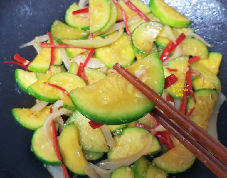 Taste the stir-fried zucchini and adjust the seasoning as needed. If you prefer a milder flavor, it might be perfect as is. However, if you desire a richer, saltier taste, add 1 teaspoon of Hongyeongui Dungeness Crab Soy Sauce to adjust the flavor. (Remember to consider the saltiness of the fermented shrimp already added when deciding on the amount.)