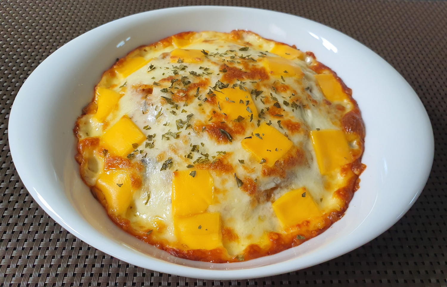 Finally, sprinkle some parsley flakes over the cheese for garnish. Bake in a preheated oven at 180°C (350°F) for about 10 minutes, or until the cheese is golden brown and slightly crispy around the edges. If you don’t have an oven, you can use an air fryer or cover a frying pan with a lid and cook over low heat until the cheese melts. Serve immediately while hot for the best taste experience!