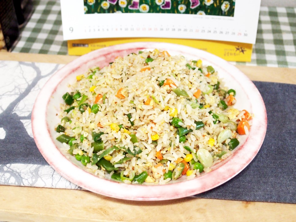 Your vegetable fried rice is ready! The rice grains remain distinct and fluffy, giving it a delightful texture. Enjoy this visually appealing and delicious fried rice for a satisfying meal!