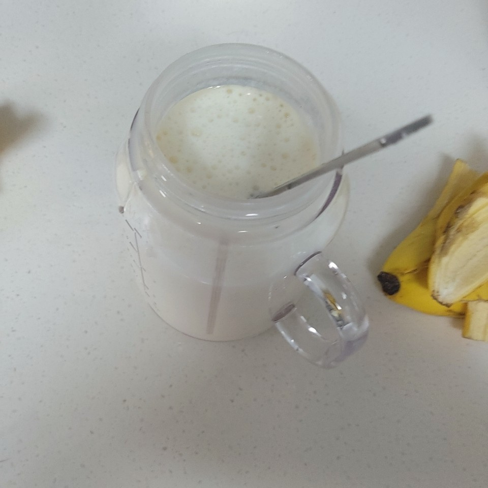 Now it’s time to add the milk. Pour in enough fresh milk to fill approximately 1/5 of the blender’s capacity. If you add too much milk, the banana flavor might become diluted, so consider your desired consistency when adjusting the amount.