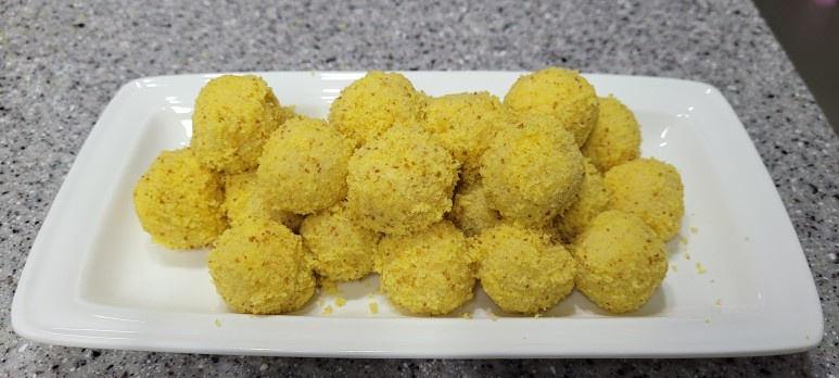Drain the chilled dango gently, letting excess water drip off. Place them in the bowl with the sifted Castella cake crumbs. Roll the dango around until evenly coated. Your delicious Castella Dango are now ready! They are best enjoyed warm, with their delightful contrast of soft, chewy interior and powdery, sweet exterior.