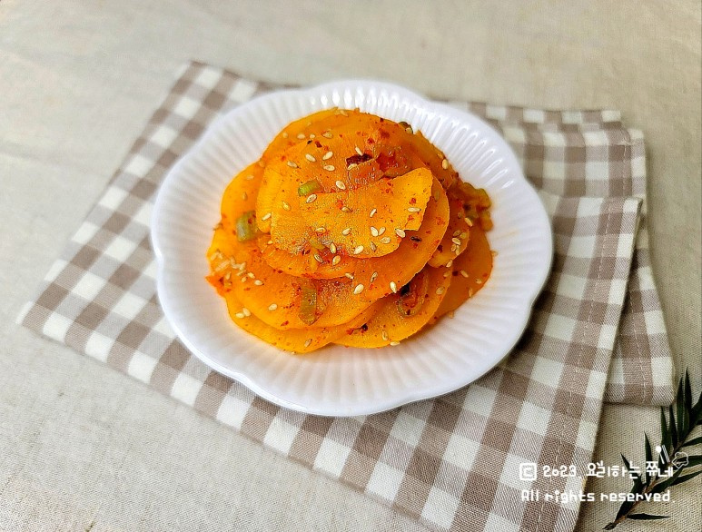 You can use the pickled radish as is, but if you find it too salty or sour, you can rinse it lightly under running water. Be careful not to rinse it for too long, as this might diminish its unique flavor.