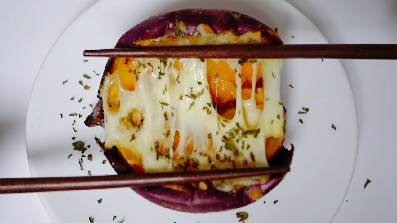 Place the sweet potato, now filled with all the ingredients, back into the air fryer and bake at 180°C (350°F) for another 5 minutes. It will be even more delicious when the cheese is melted and golden brown, and the butter has seeped into the sweet potato. If using a microwave, heat for 1-2 minutes to melt the cheese for a quick option.