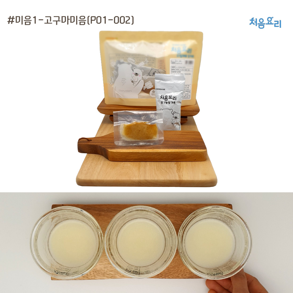 Inside the ‘Cheoeum Yo-ri’ kit, you’ll find two packages: Package 1 contains 10g of rice flour, and Package 2 contains 10g of sweet potato. These carefully selected ingredients are safe and fresh for your little one.
