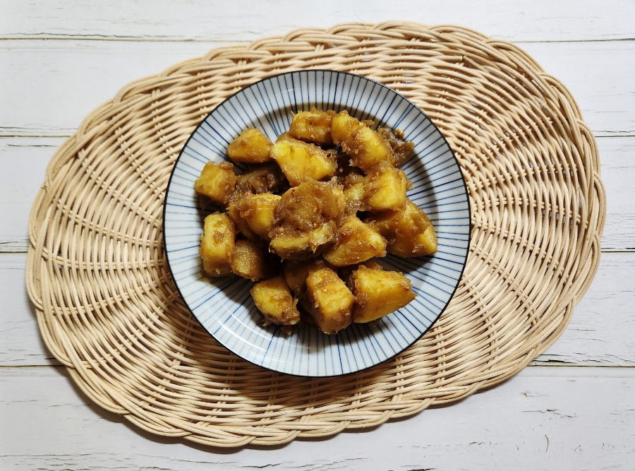 Your delicious sweet and savory braised sweet potatoes are ready! This flavorful side dish is perfect served alongside a bowl of hot steamed rice.