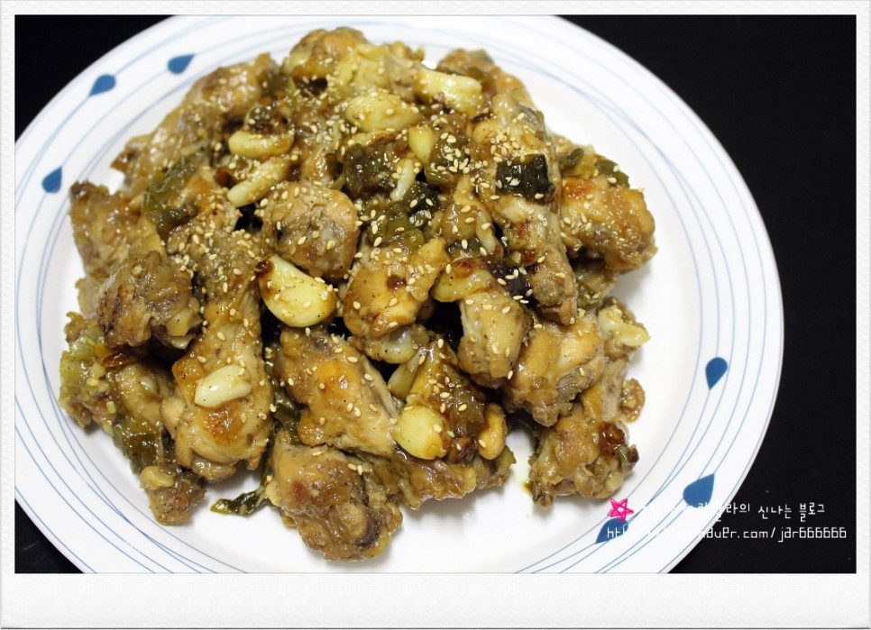 To help remove any gamey odor and tenderize the chicken, prepare about 1/2 cup of soju (Korean distilled spirit) using a standard drinking cup.