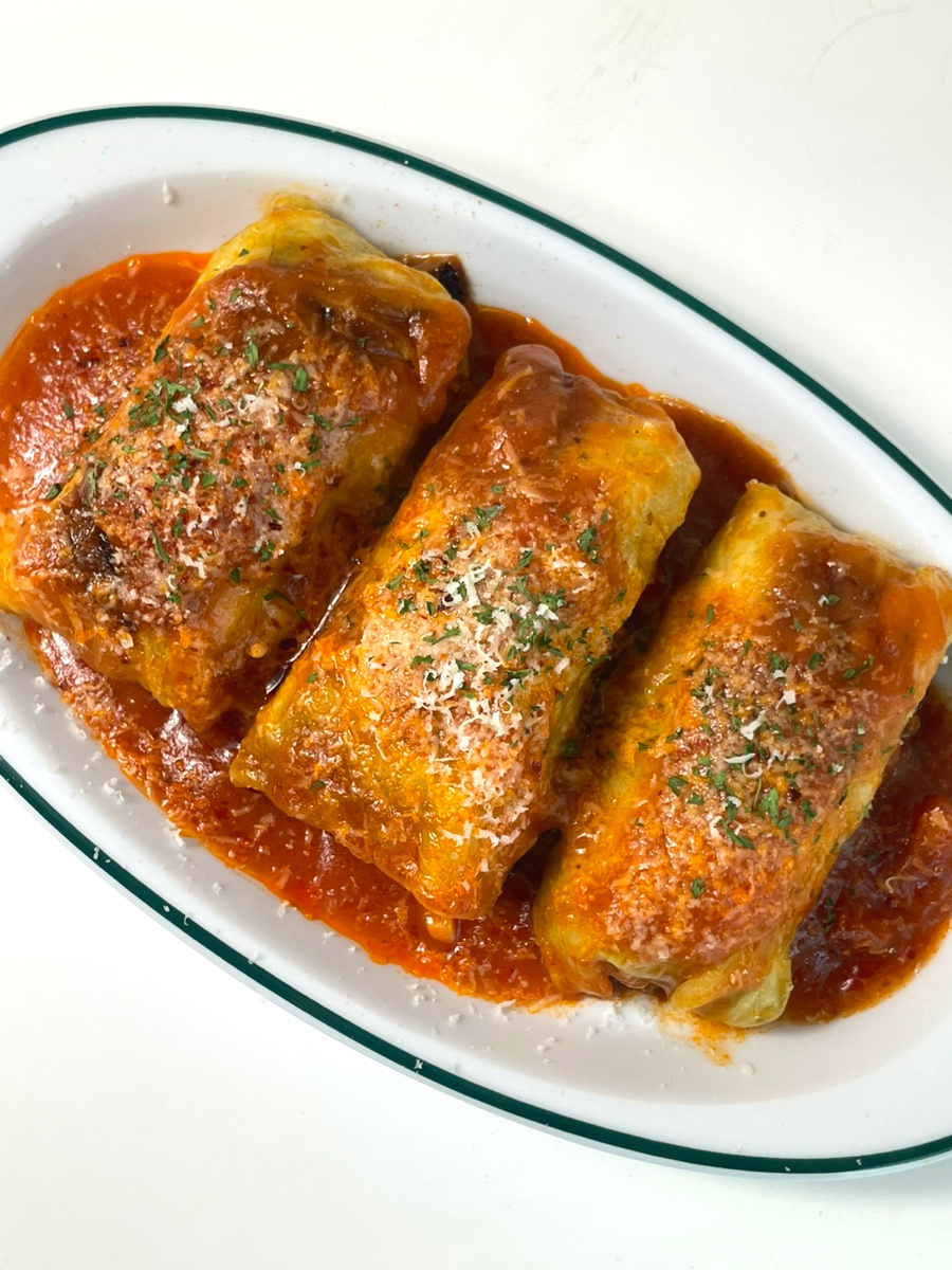 To serve, arrange the simmered cabbage rolls on a plate. Grate some Grana Padano cheese (or Parmesan) over the top. Spoon some of the warm tomato sauce over the rolls. Finish with a sprinkle of parsley flakes and crushed red pepper flakes for a beautiful presentation and an extra touch of flavor. Enjoy your delicious and healthy Chicken Breast Cabbage Rolls!