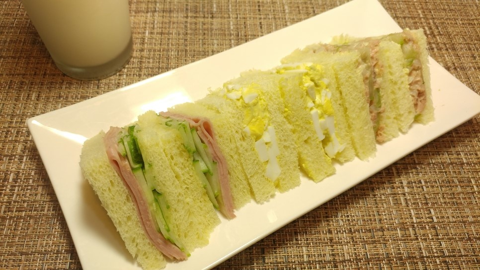 Introducing a special sandwich recipe featuring three delightful flavors: the warm and savory ‘Egg Sandwich’, the crisp and refreshing ‘Ham & Cucumber Sandwich’, and the moist and tender ‘Tuna Sandwich’! The Ham & Cucumber Sandwich is inspired by Nami Iijima’s recipe from the Japanese drama ‘Midnight Diner’, while the Tuna Sandwich is my own creation. With these sandwiches, you can choose your favorite or enjoy all three! They are perfect for a quick, satisfying meal, especially when paired with a cold glass of milk.