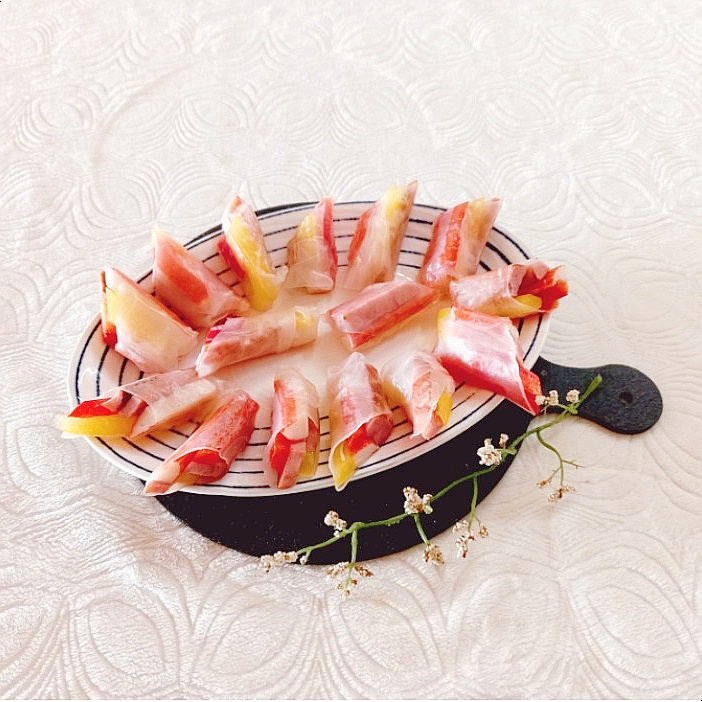 Prepare all your filling ingredients. For the cucumber, wash it thoroughly, gently rub it with a little coarse salt, rinse, and then julienne it (cut into thin strips). If using ham that needs cooking, lightly blanch it in boiling water or pan-fry it until cooked through. Then, slice it into similar lengths as the vegetables. For the bell pepper, remove the seeds and julienne it as well. Aim for strips that are about the length of your finger for easy eating.