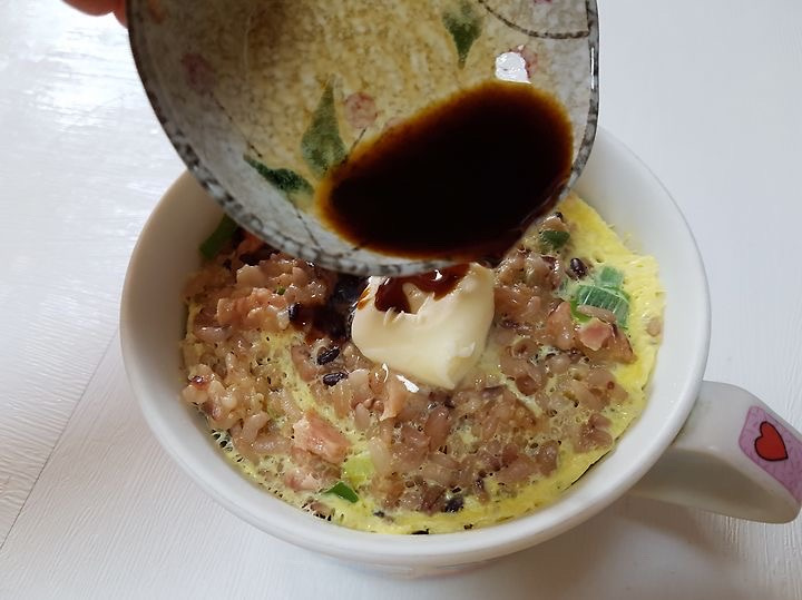 Arroz de Huevo con Mantequilla y Salsa de Soja Súper Sencillo al Microondas