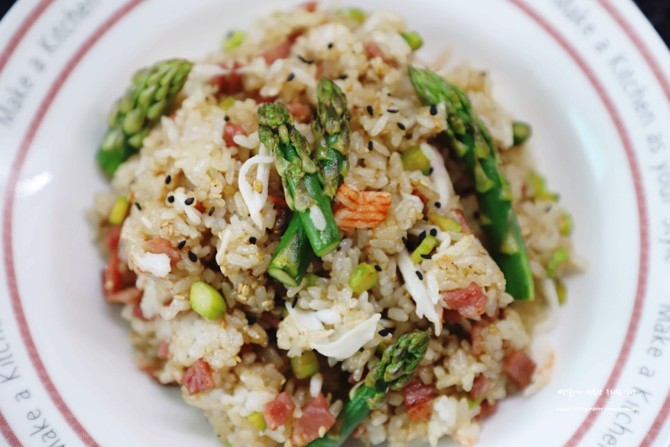 ¿Te preguntas cómo disfrutar los espárragos? ¡Son maravillosamente versátiles! Este sencillo arroz frito es una forma fantástica de aprovecharlos. El sabor fresco y ligeramente herbáceo de los espárragos combina a la perfección con el sabroso tocino y las tiernas barritas de cangrejo para crear un plato único y satisfactorio. ¡Una opción rápida y deliciosa para tu fin de semana!