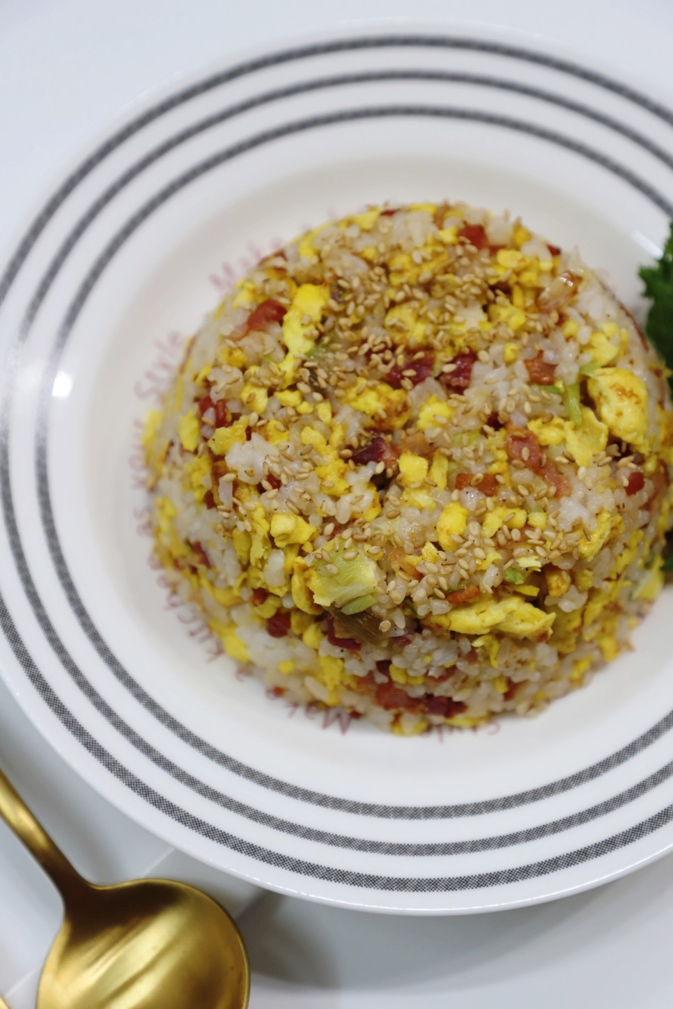 Una rápida revisión en el refrigerador puede revelar los ingredientes para un arroz frito sustancioso. El tocino y los huevos, comúnmente usados en sándwiches, hoy se transforman con arroz. Incluso sin muchos condimentos, el tocino aporta una salinidad y umami deliciosos que impregnan todo el plato. Complementado con huevos revueltos esponjosos, ¡es una combinación ganadora! Este sencillo arroz frito es ideal para cualquier comida y una excelente opción para compartir con los niños.