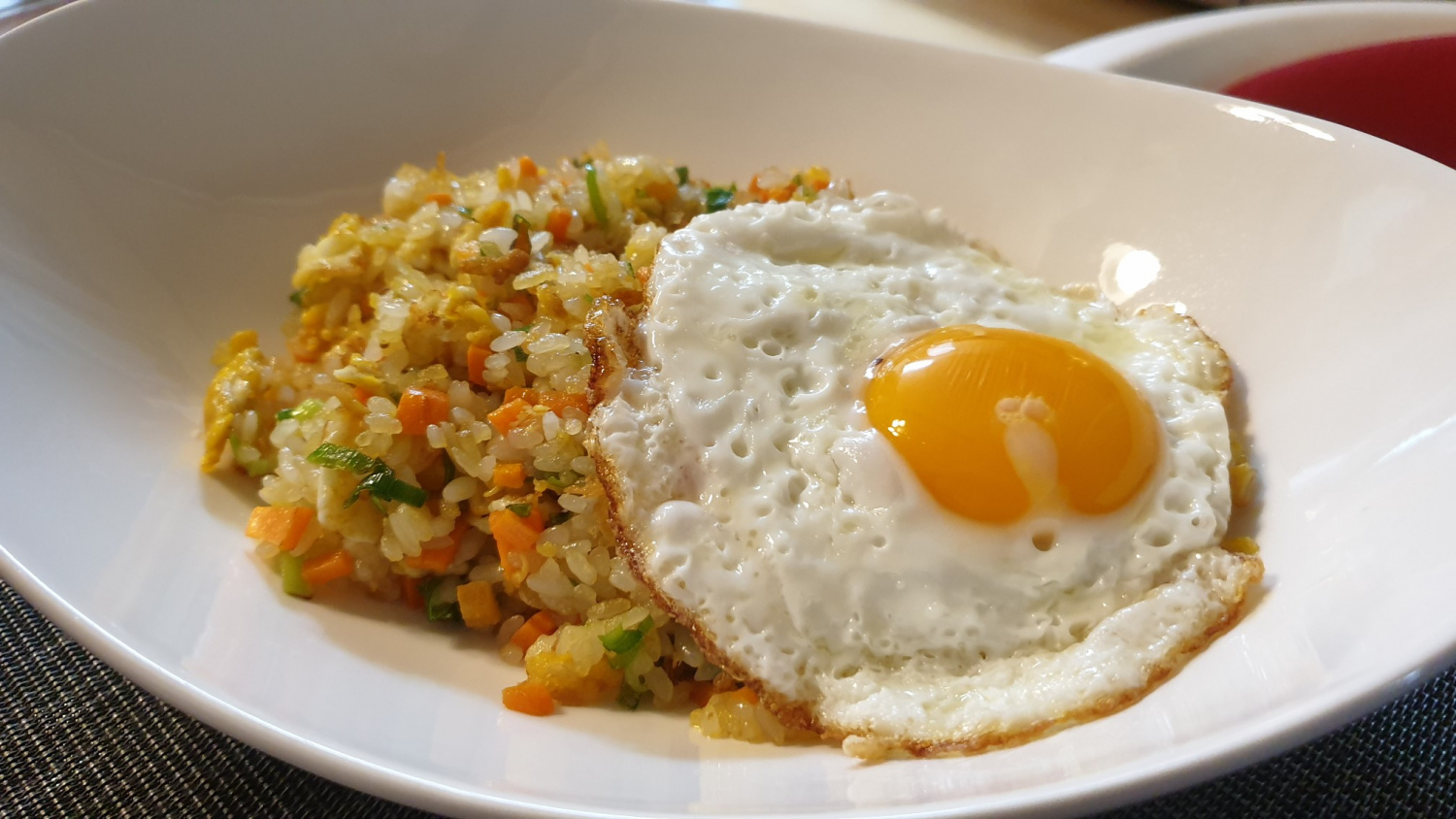 Para una comida aún más satisfactoria y una presentación hermosa, puedes coronar el arroz frito con un huevo frito aparte.