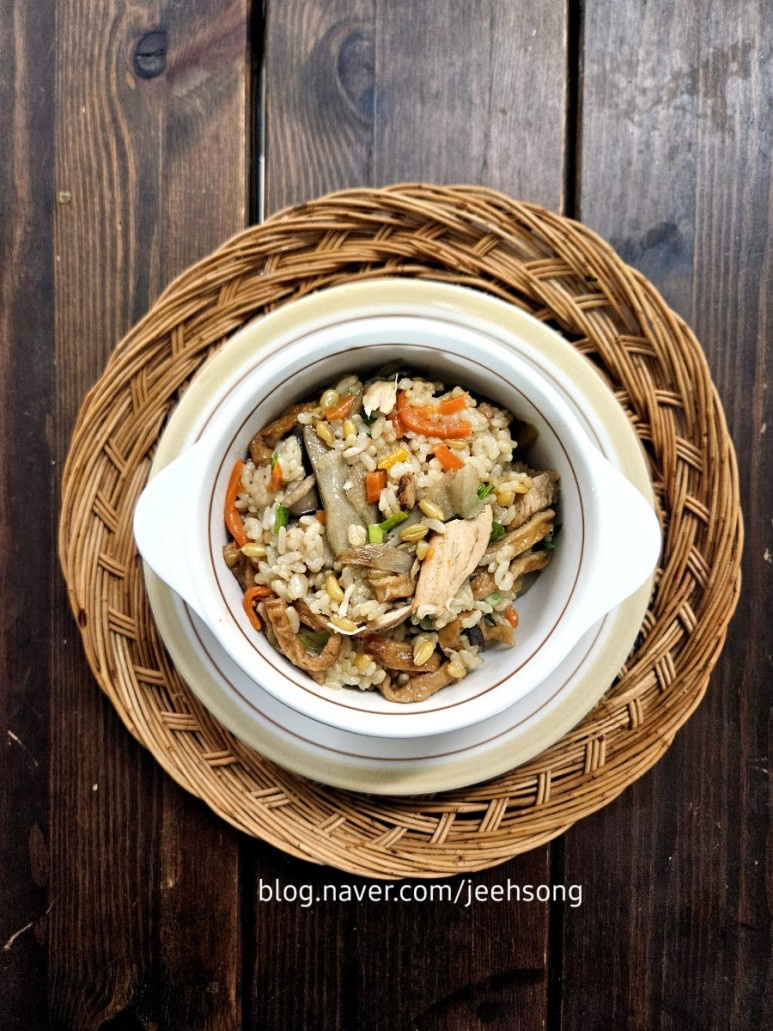 Los platos de arroz nutritivos, como el ‘sot-bap’ (arroz cocido en olla) o el ‘nabe-bap’ (arroz cocido en cacerola), son fáciles de preparar en casa. ¡Puedes obtener resultados igualmente deliciosos usando una olla a presión! Esta receta es perfecta para una comida completa y saludable en un solo tazón, destacando el sabor profundo y sabroso de la raíz de bardana combinado con una mezcla de verduras y proteínas.